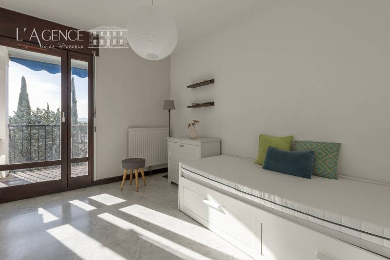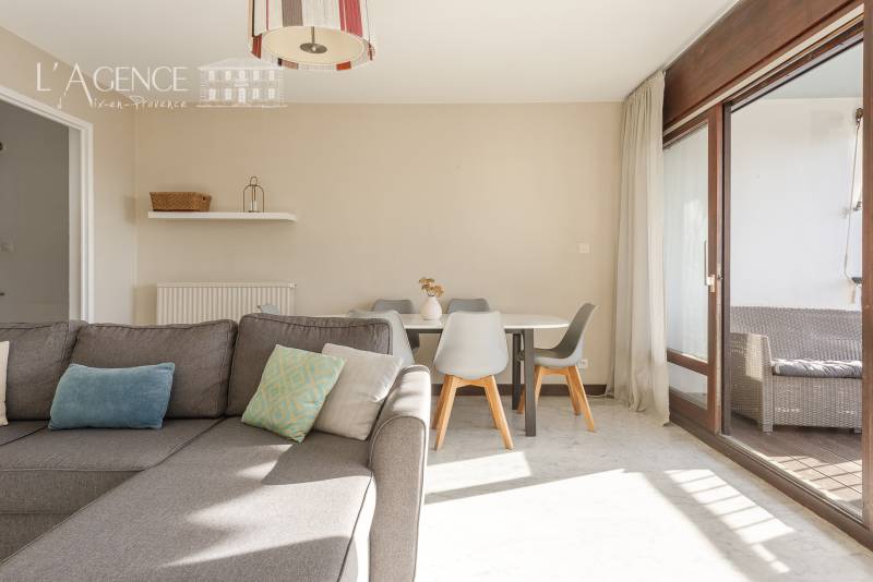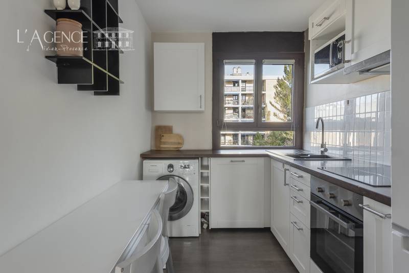 Situé au dernier étage d’un petit immeuble de copropriété, cet appartement de 80,48 m² bénéficie d’une vue panoramique imprenable sur Aix-en-Provence dès l’entrée. Idéal pour une famille, il allie espaces bien agencés, belle luminosité et cadre privilégié sur les hauteurs de la ville.
