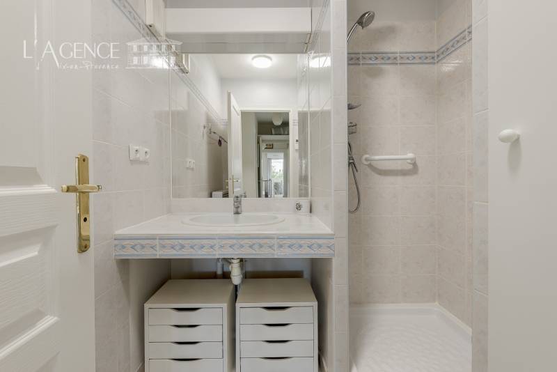 Les parties communes de la résidence sont en très bon état, reflétant un cadre de vie serein et bien entretenu, avec une grande piscine.