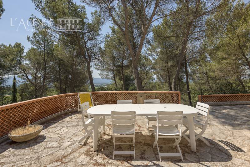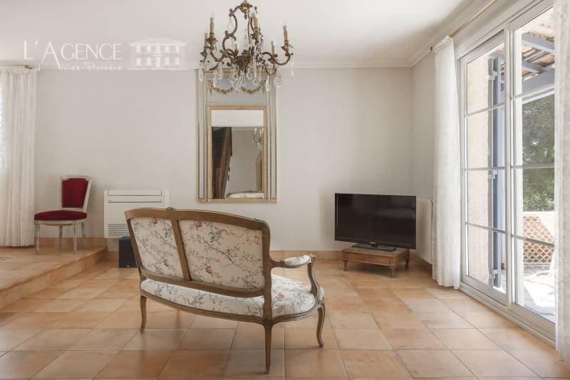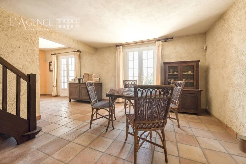 EXCLUSIVITÉ – À deux pas du village, dans un secteur calme et très prisé, cette jolie maison de style provençal développe environ 130 m² habitables sur un terrain arboré de 1 424 m², parfaitement intégré au paysage naturel environnant.