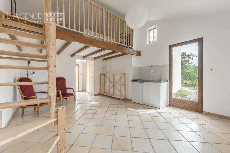 une entrée, un séjour, une cuisine indépendante, deux chambres et une salle de bains avec un wc indépendant. Un espace pouvant être indépendant comprenant une salle d'eau avec wc et une mezzanine.