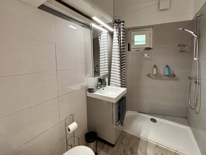 Au rez-de-chaussée, vous découvrirez un hall d’entrée, un séjour baigné de lumière, une grande cuisine indépendante entièrement aménagée, une chambre ainsi qu’une salle d’eau avec WC, un salon télé / cellier pouvant être transformé en chambre.