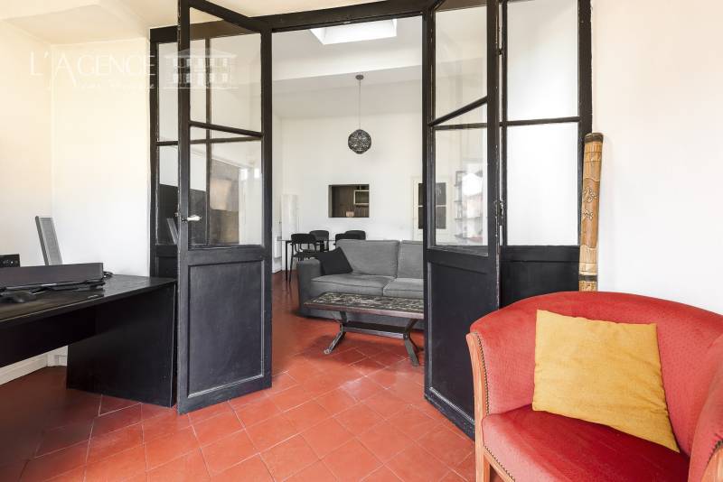 Dès l’entrée, le charme opère : un séjour chaleureux agrémenté d’un espace bureau aménagé derrière une verrière, idéal pour télétravail ou coin lecture. La cuisine séparée, la chambre confortable, le dressing fonctionnel ainsi que la salle de bains avec Wc composent un agencement harmonieux et pratique.